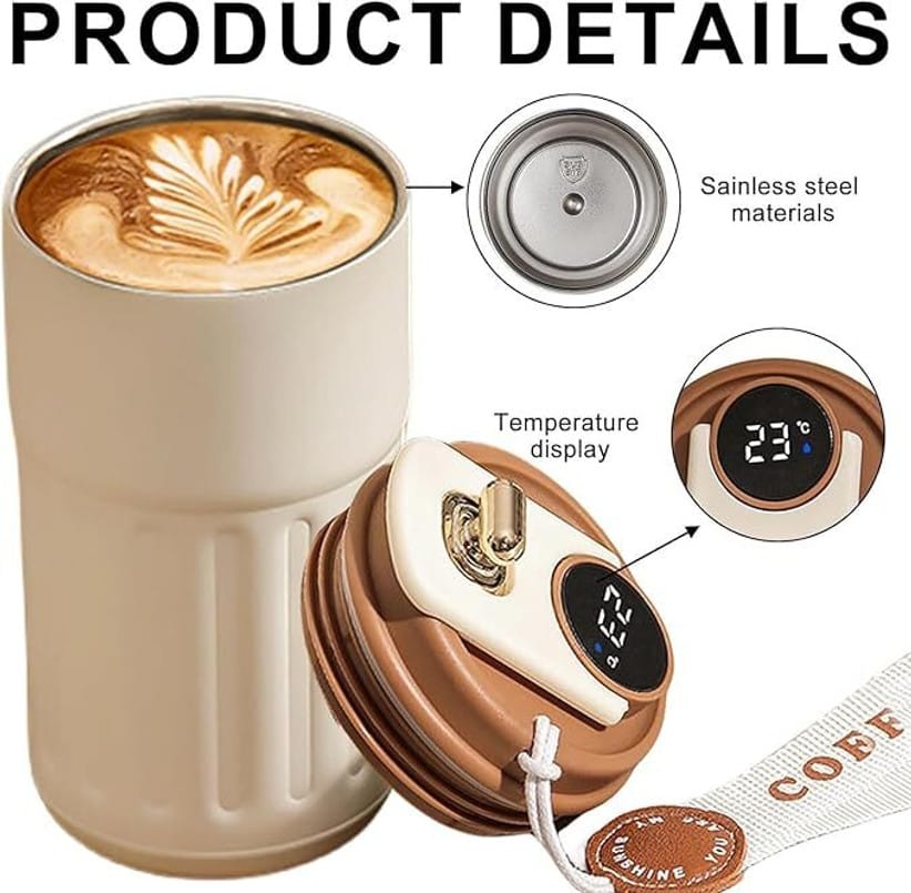 Smart LED Temperature Display: High-definition screen on the lid shows the exact temperature of your beverage.